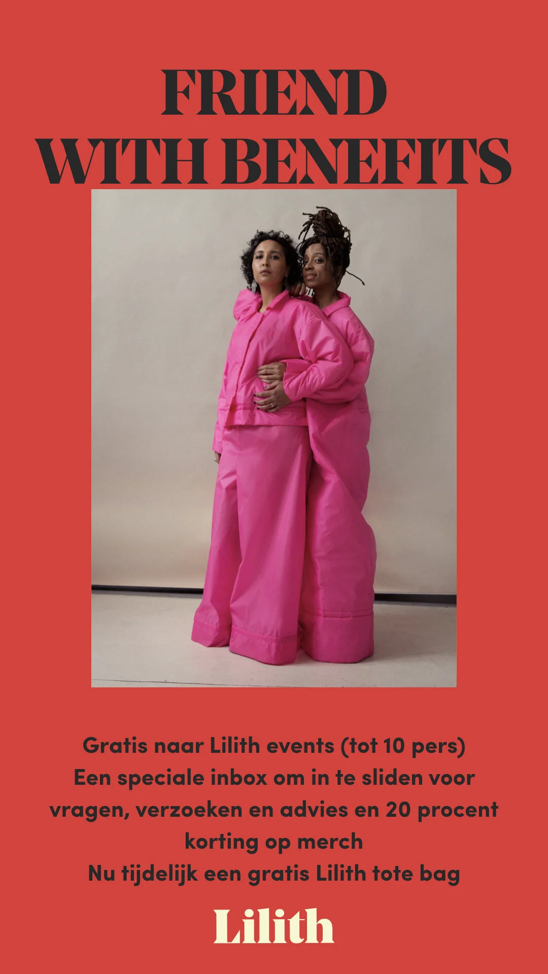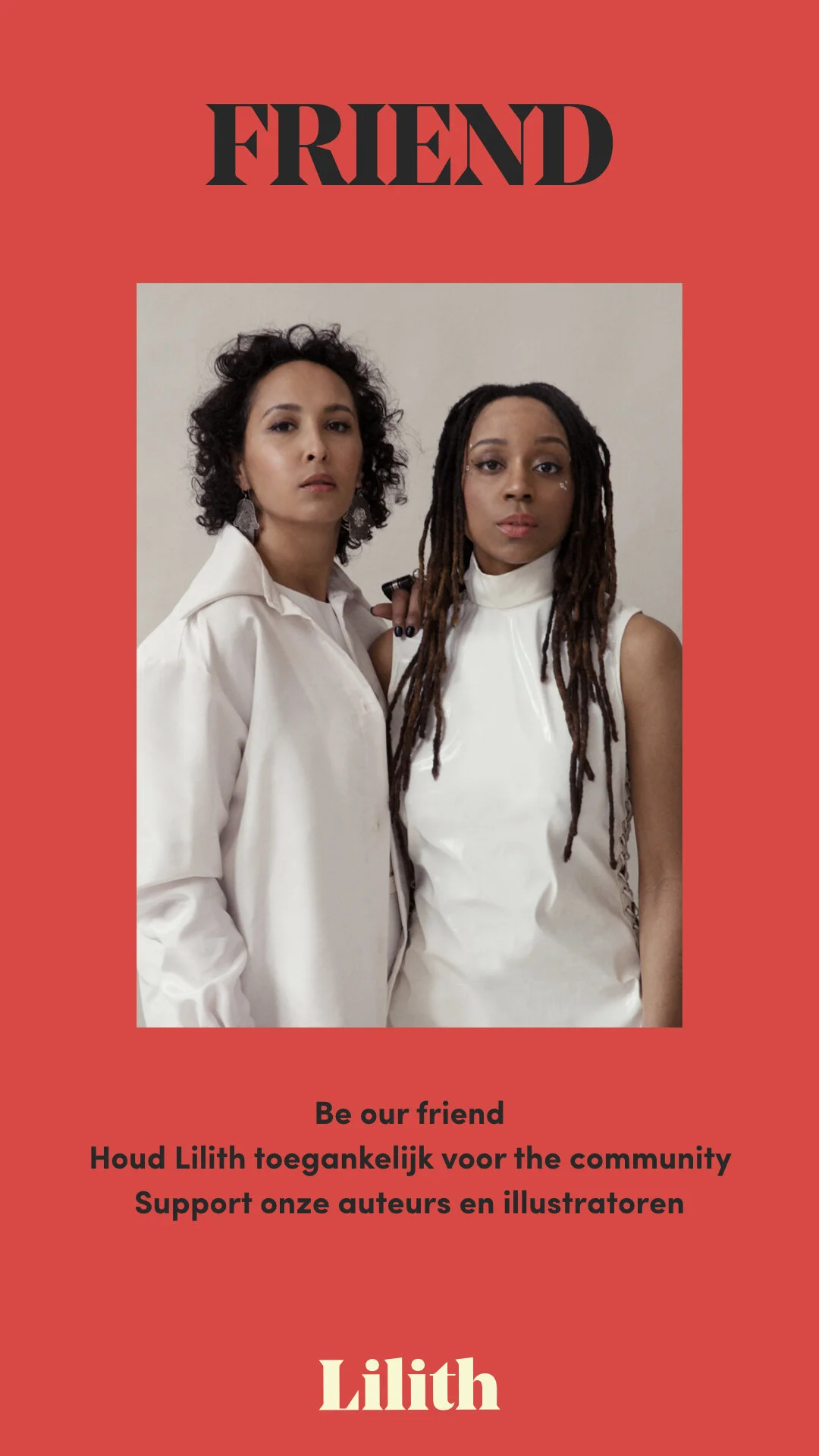 Door nu een Friend of Friend with Benefits te worden zorg je ervoor dat wij (beginnende) journalisten, schrijvers, illustratoren, dichters en andere creatievelingen met name vrouwen en anderen uit gemarginaliseerde groepen een vergoeding (en ervaring) kunnen bieden, dat de website gratis toegankelijk blijft voor iedereen die het zich wellicht niet kan veroorloven, dat we meer en hoogstaandere content kunnen maken: dus Lilith vaker in je feed. En dat we blijven groeien tot we nationaal en internationaal een begrip zijn. Groei jij met ons mee?