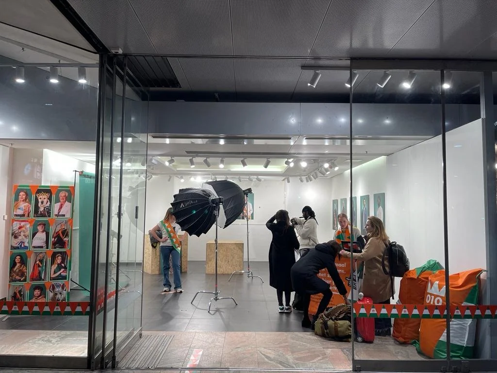Ter gelegenheid van de Koningsdagtour is het centrum van Rotterdam getransformeerd in een oranje bastion. In de Koopgoot is de oranje loper vast uitgerold, de stad is behangen met banners in de kleuren van de Rotterdamse vlag – groen-wit-groen – met oranje vlaggetjes eroverheen. Op het hoogste gebouw van Nederland, de Zalmhaven I, prijkt zelfs een kroon. Trams zijn beplakt in de Koningsdagtourhuisstijl, de Markthal is versierd, op Rotterdam Centraal is een fotostudio opgetuigd, waar voorbijgangers zichzelf op de gevoelige plaat kunnen laten vastleggen met een koninklijke sjerp om. Iedereen kan hier zijn vijf seconden fame pakken met een eigen staatsieportret. Waar je ook komt, overal word je met je neus op de monarchie gedrukt; ontkomen aan het oranjegeweld is onmogelijk.