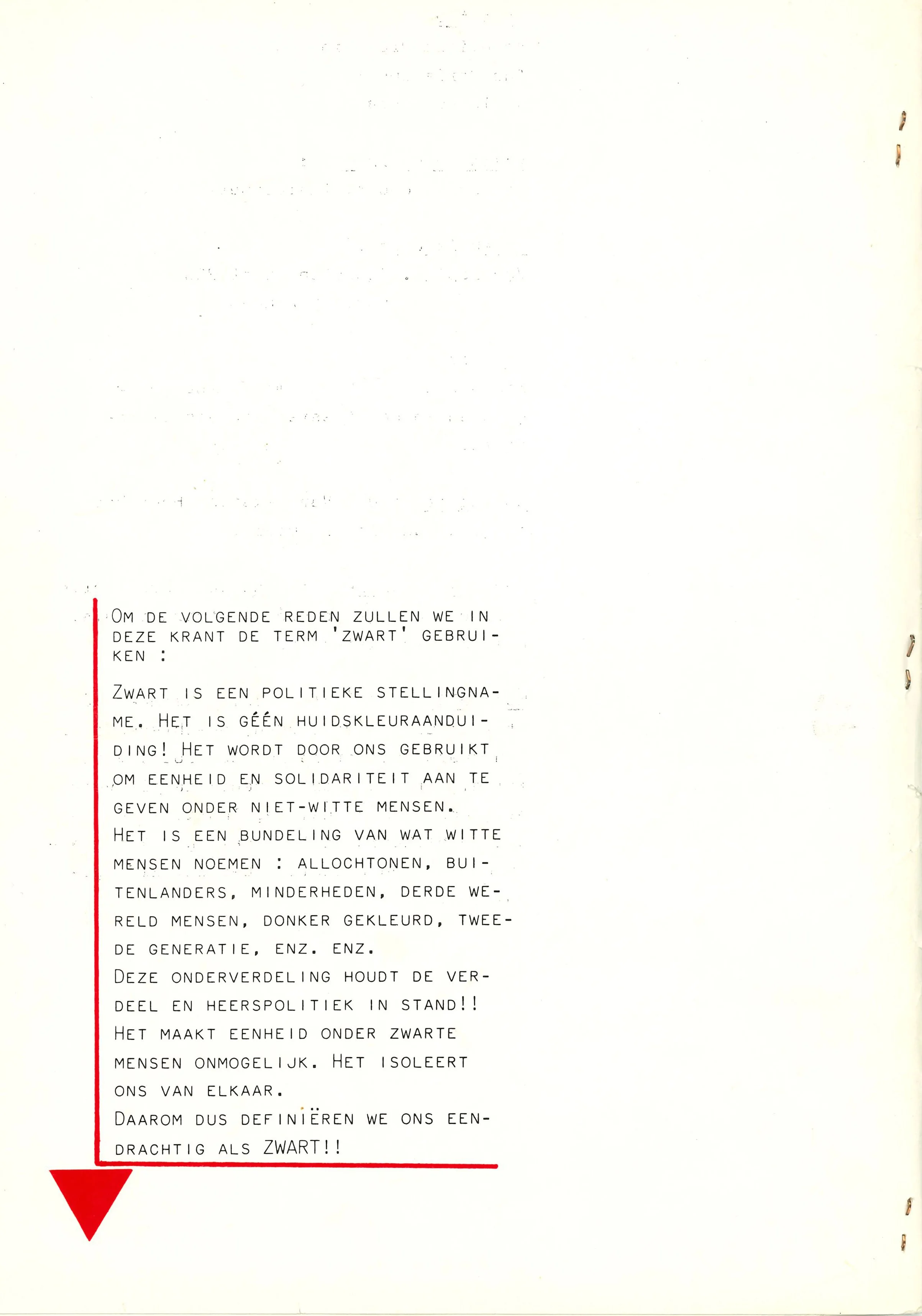 Achterzijde omslag van het tijdschrift Umoja Zwarte Vrouwenkrant (januari 1985), gepubliceerd door Stichting ‘Zwarte Vrouwen & Racisme’ Arnhem.